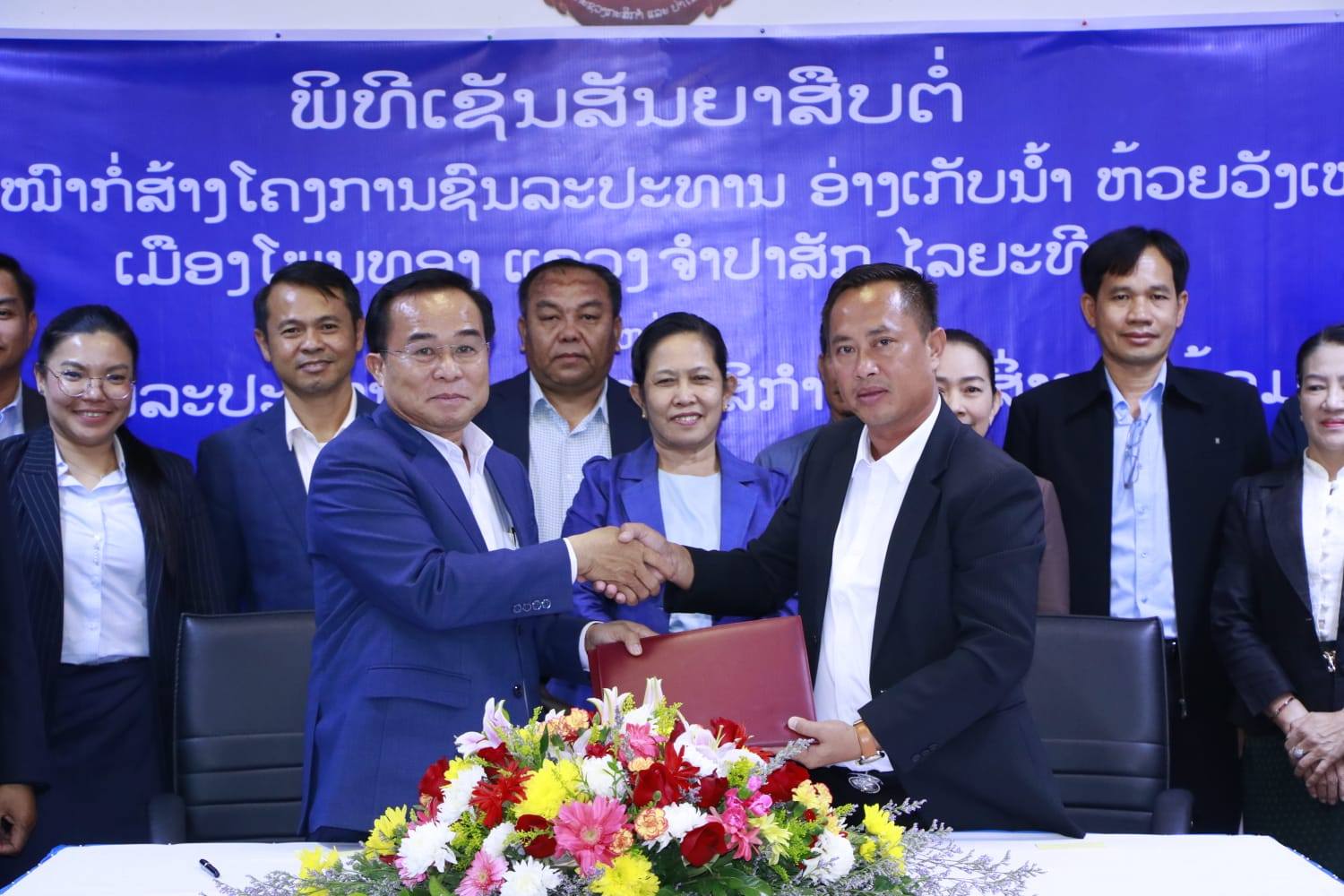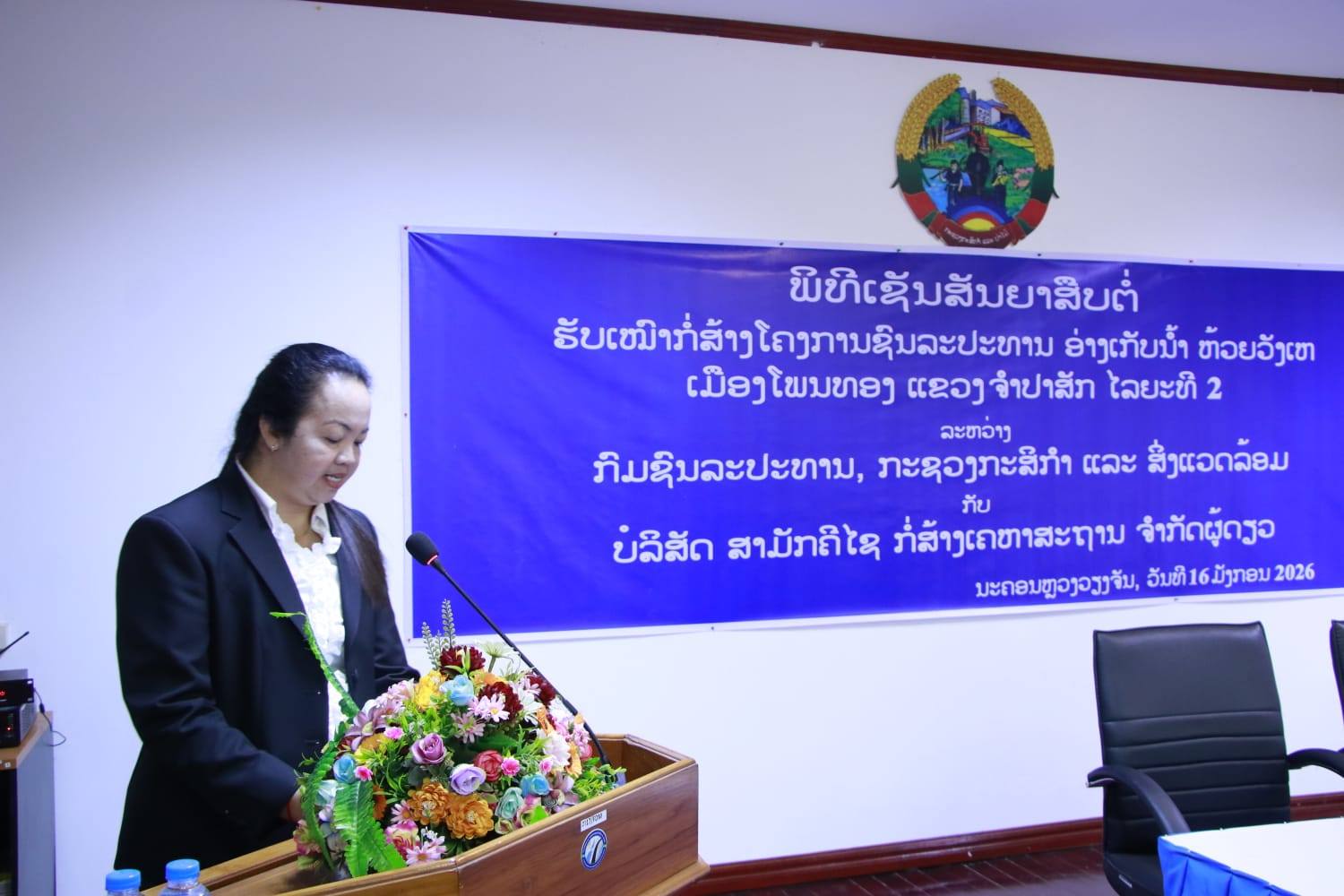 ພິທີເຊັນສັນຍາຮ່ວມມື ສືບຕໍ່ ຮັບເໝົາກໍ່ສ້າງໂຄງການຊົນລະປະທານ ອ່າງເກັບນໍ້າຫ້ວຍວັງເຫ ເມືອງໂພນທອງ ແຂວງຈໍາປາສັກ ໄລຍະ 2 ໄດ້ຈັດຂຶ້ນໃນຕອນແລງວັນທີ 16 ມັງກອນ 2026 ທີ່ນະຄອນຫຼວງວຽງຈັນ ລະຫວ່າງ ກົມຊົນລະປະທານ, ກະຊວງກະສິກໍາ ແລະ ສິ່ງແວດລ້ອມ ຕາງໜ້າໂດຍ ກົມຊົນລະປະທານ ກັບ ບໍລິສັດ ສາມັກຄີໄຊ ກໍ່ສ້າງເຄຫາ ຈໍາກັດຜູ້ດຽວ ຕາງໜ້າເຊັນໂດຍ ທ່ານ ປອ. ຄໍາພະຈັນ ວົງຊະນະ ຫົວໜ້າກົມຊົນລະປະທານ ແລະ ທ່ານ ໄກສອນ ຈັນທະສອນ ໃນນາມບໍລິສັດ ສາມັກຄີໄຊ ກໍ່ສ້າງເຄຫາ ຈໍາກັດຜູ້ດຽວ. ໃຫ້ກຽດເຂົ້າຮ່ວມເປັນສັກຂີພິຍານ ຂອງ ທ່ານ ປອ ນ. ຈັນທະຄອນ ບົວລະພັນ ຮອງລັດຖະມົນຕີກະຊວງກະສິກໍາ ແລະ ແວດລ້ອມ, ທ່ານ ສົມອຸລາ ຍະພິຈິດ ຮອງຫົວໜ້າຫ້ອງການ, ທ່ານ ນາງ ຍົມມະລາ ສີຫາວົງ ຮອງຫົວໜ້າພະແນກກະສິກຳ ແລະ ສິ່ງແວດລ້ອມ ແຂວງຈໍາປາສັກ, ມີບັນດາທ່ານຕາງໜ້າຫົວໜ້າ-ຮອງຫົວໜ້າກົມ ພ້ອມດ້ວຍພາກສ່ວນທີ່ກ່ຽວຂ້ອງເຂົ້າຮ່ວມ.